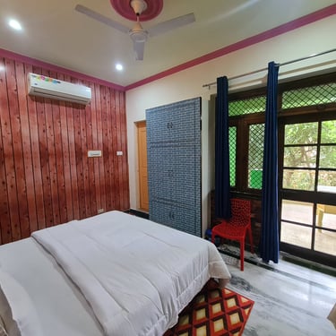 This air-conditioned twin/double room features a desk, a balcony, garden views and a private bathroom featuring a shower